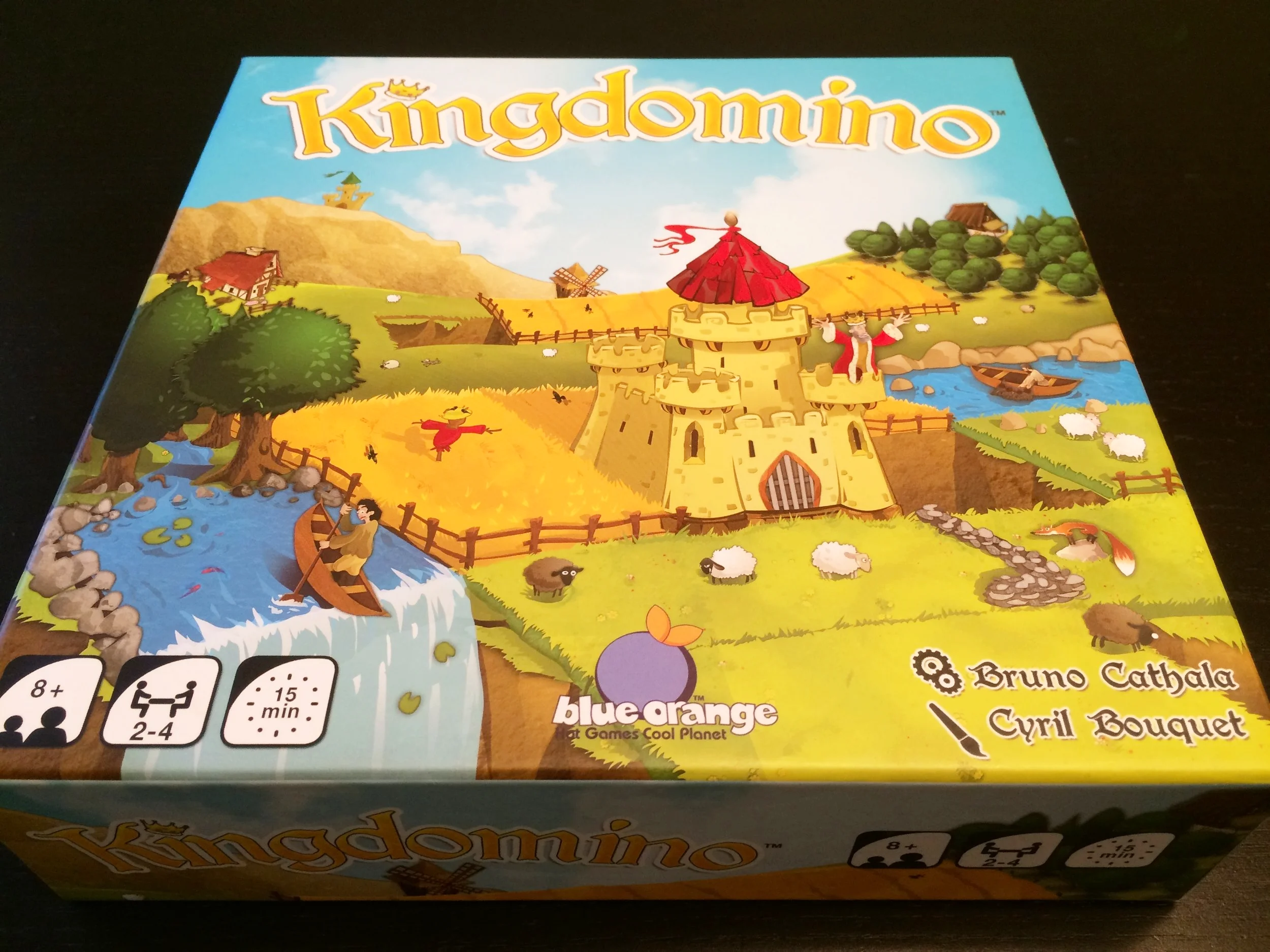 My first prototype, to validate the concept, was on a 4x4 grid, with eight dominoes per player. It was nice, but not long enough. So I increased it to 12 dominoes. At first, there was no castle, and players had to fulfill a 4x6 grid. But it was confusing for some of them. That’s the reason why Sébastien Pauchon (Jaipur), who is a friend and a talented game designer, suggested to me to add the castle tile, allowing players to play on a 5x5 grid.