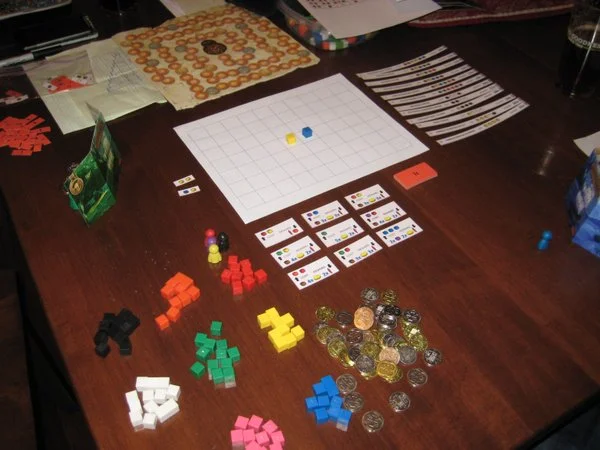 In March of 2013 I thought I had a fun game on my hands but I went to Protospiel-Milwaukee with the goal of “validating” the design. I wanted to know if people who were not my “friends” thought the game was fun. I hadn’t yet applied the auction change because I wanted to know if I would get the same feedback. I did. No one liked the old auction. So overnight I implemented the auction change and got a couple repeat testers the next day who thought the auction was drastically better. That was fantastic, and I highly recommend you attend a Protospiel event as a designer.
